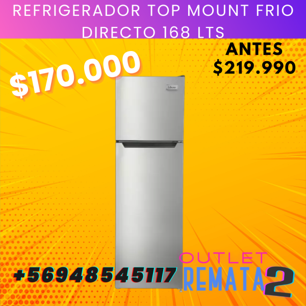 REFRIGERADOR TOP MOUNT FRIO DIRECTO 168 LTS