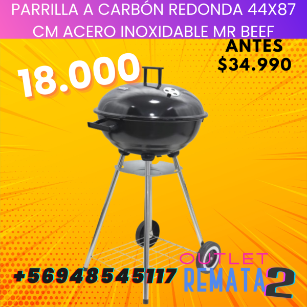 Parrilla a Carbón Redonda 44x87 cm Acero Inoxidable MR BEEF $34.990 $18.000