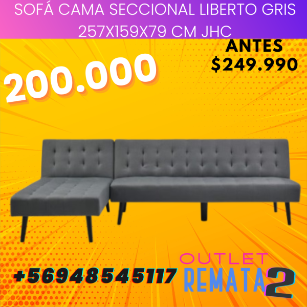 Sofá Cama Seccional Liberto Gris 257x159x79 cm JHC