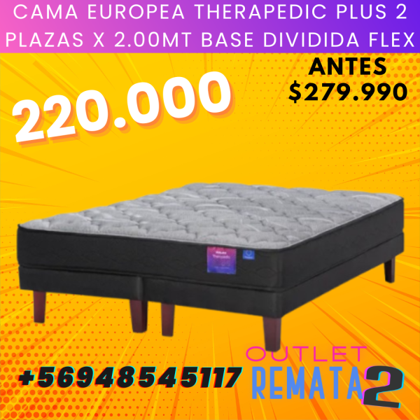 Cama Europea Therapedic Plus 2 Plazas X 2.00Mt Base Dividida Flex