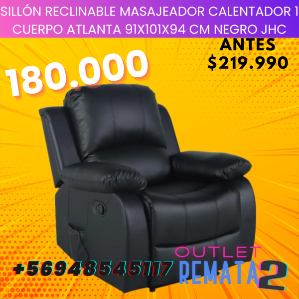 Sillón Reclinable Masajeador Calentador 1 cuerpo Atlanta 91x101x94 cm Negro JHC