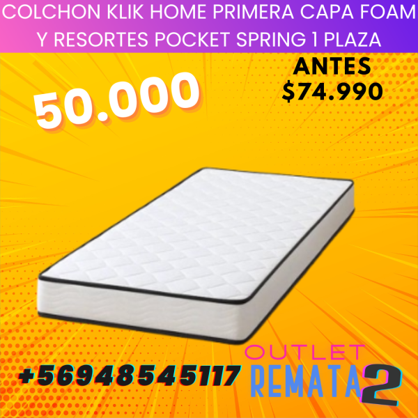 COLCHON KLIK HOME PRIMERA CAPA FOAM Y RESORTES POCKET SPRING 1 PLAZA