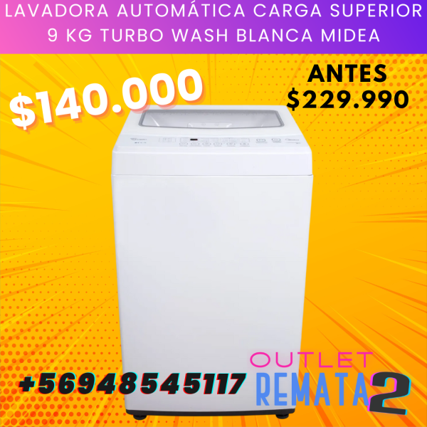 Lavadora Automática Carga Superior 9 kg Turbo Wash Blanca Midea